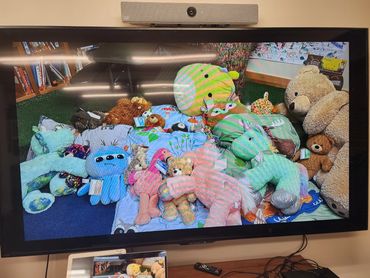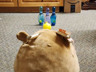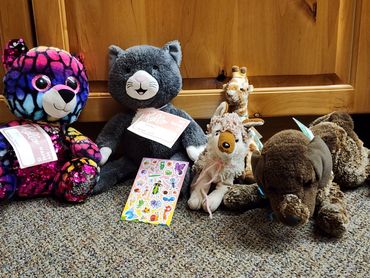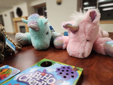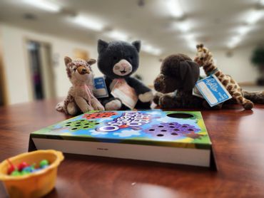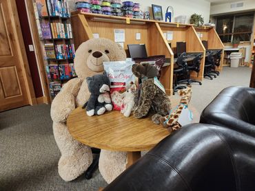 All of the stuffies had a great night. They climbed the tree, had a tea party, went bowling, played games, made a fort and used some of the library books and equipment.